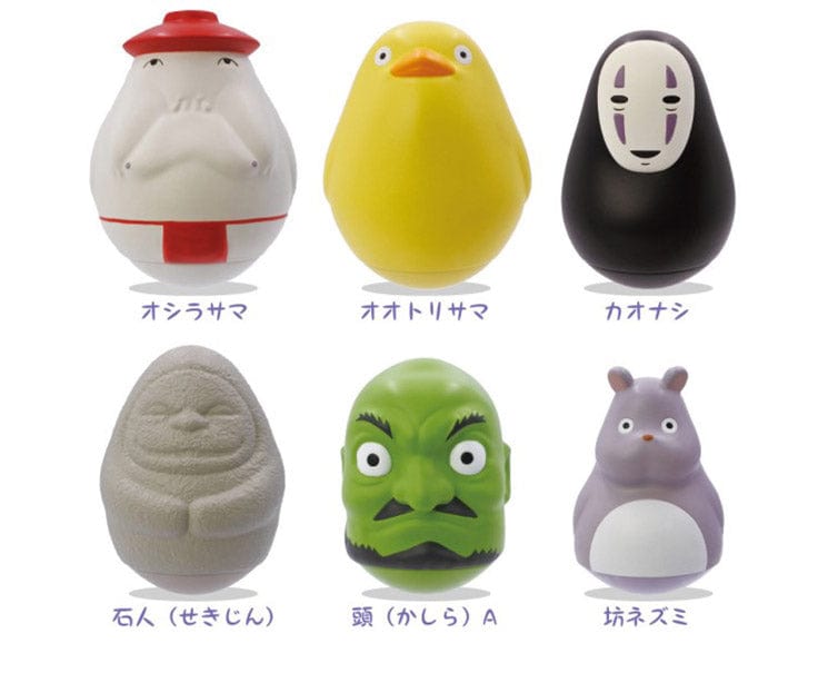 Explore the beloved characters of one of Studio Ghibli's most loved films - Spirited Away with six blind box designs. Every box includes collectible toys that have a roly-poly design, making them fun to play with regardless of your age. With their special design, these mini toys will always right themself when tipped. With an order, you'll receive one of the following characters in toy form: No Face, Radish Spirit, Kashira, Otori-Sama, Boh (Hamster), or Dosojin Statue.