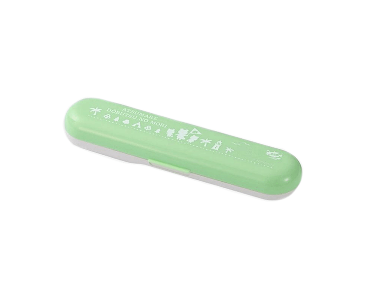 Coming inside the official turquoise case, the fork and spoon are designed with the "Atsumare Doubutsu No Mori" which is Japanese for Animal Crossing: New Horizons.