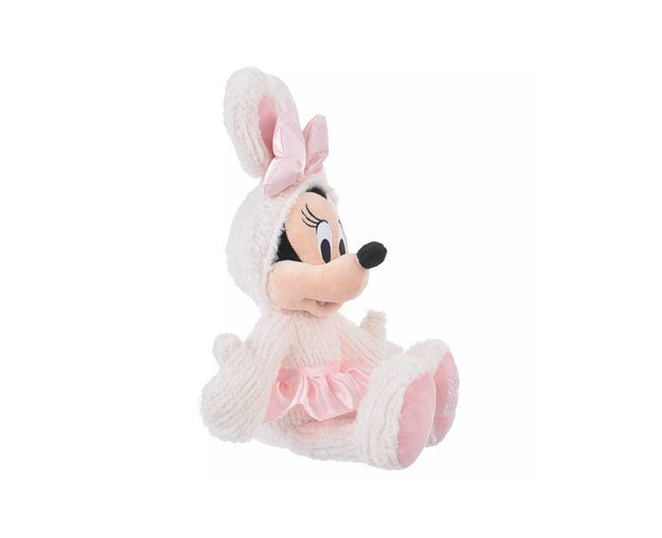 Disney Easter Plushie Minnie is here in a gentle pastel-colored costume that suits her perfectly. When it comes to Easter, rabbits are a must-have. Minnie's plushie is no exception, with its cute style of wearing a hood with rabbit ears. The plush fabric with its wavy texture offers a soft touch that's both visually and tactilely comforting. Adorned with a pink ribbon and skirt, Minnie looks even more adorable! Don't miss the logo embroidery on the soles of her feet. Let's celebrate Easter with Minnie by your side!