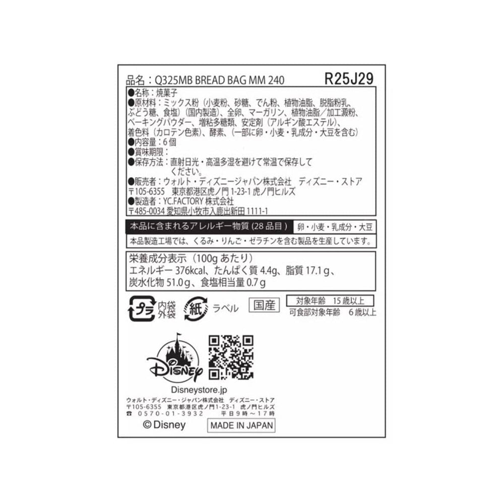 This adorable Disney Mickey & Friends Egg Bread In A Bag from the Mickey's Bakery series has a delicious surprise - soft, fluffy, slightly sweet bread rolls inside! These rolls are delicious as-is or lightly toasted. The outside of the bag features a fun design with various Disney characters like Mickey, Minnie, Chip, and Dale, with delicious pastries scattered about. It also includes a snap, making this bag an excellent option for carrying snacks, treats, and lunch once the bread is eaten.