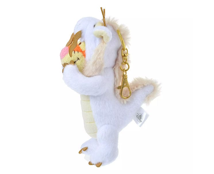 This Tigger plush keychain from Disney Japan is dressed in a white dragon costume, celebrating the 2024 Year of the Dragon. It features a plush Tigger with a white mane, golden horns, and claws!