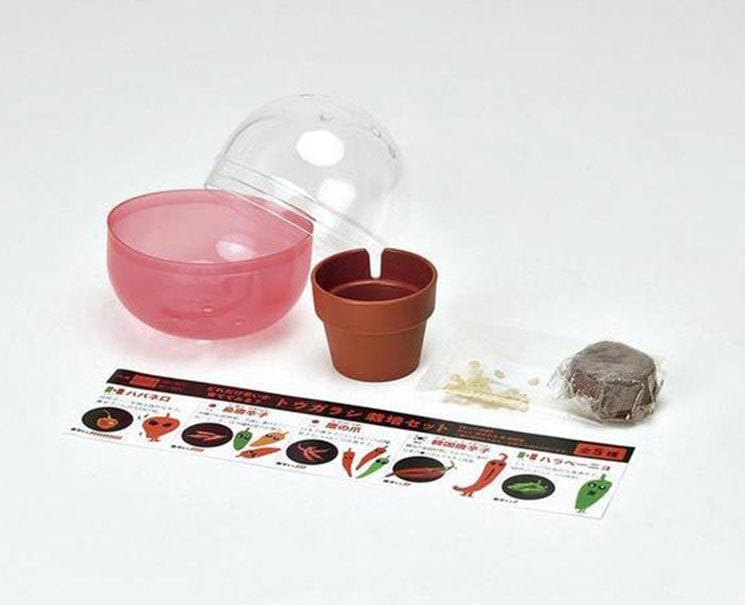 Grow and cultivate your own spicy peppers with this pepper growing DIY gachapon. Get 1 of 4 pepper types randomly! Each pepper has a different taste and level of spice, find out which one you'll get to try after opening the capsule. Different types: Habanero, Shima Chili, Hawk's Claw Korean Pepper, and Jalapeno.