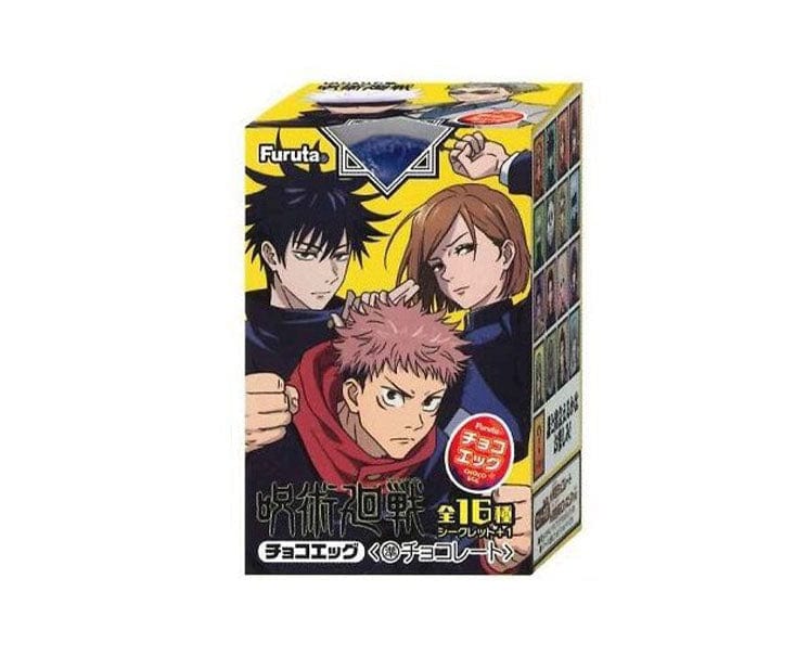 Furuta is back with a new chocolate egg in collaboration with the popular anime Jujutsu Kaisen! Inside each egg includes 1 of 17 miniature Jujutsu Kaisen characters. You can find Yuji Itadori, Megumi Fushiguro, Satoru Gojo, Kento Nanami & more! Collect 10 out of 17 possibilities. (16 + 1 Secret Character)