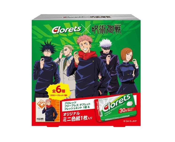 Clorets is one of the most famous gum brands in Japan. In collaboration with Jujutsu Kaisen, we have these 6 amazing package designs ( 5 characters, 1 secret character design)! Get 1 out of the 6 packages.