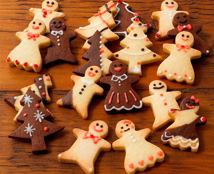 • Make either plain or cocoa cookies in the shape of gingerbread men and trees.