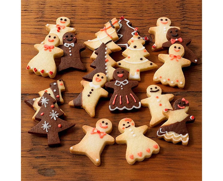 Here's a delightful and straightforward way to create festive gingerbread and tree-shaped cookies, perfect for the Christmas season. This limited edition kit includes ingredients for making both plain and cocoa-flavored dough.
