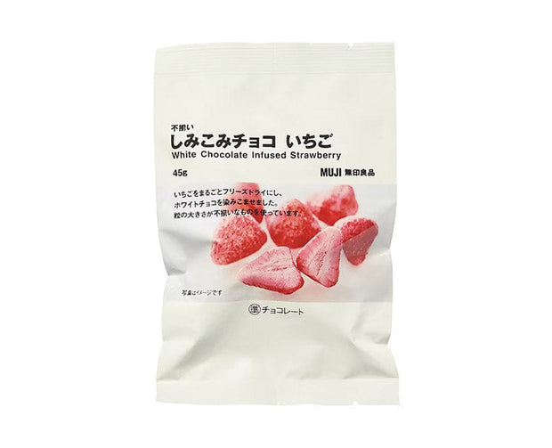 Taste the delightful fusion of Muji’s whole freeze-dried strawberries, infused with creamy white chocolate. They’re Strawberries with chocolate-like texture!
