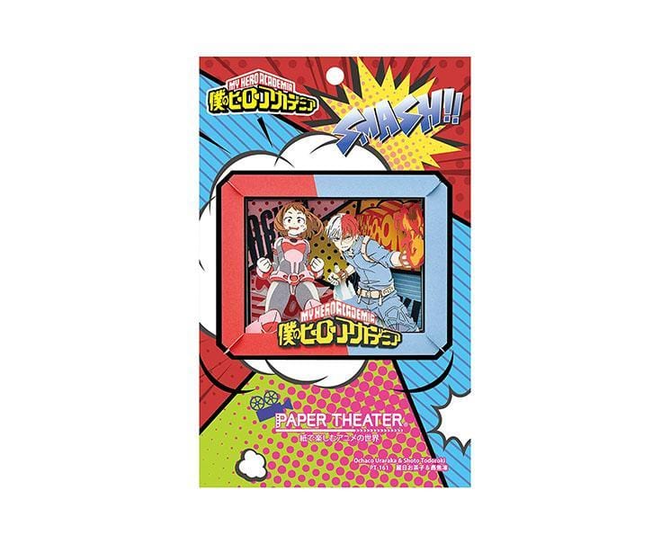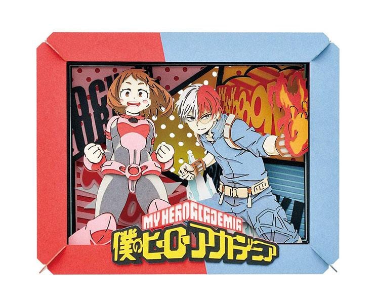 This paper theater recreates a scene from the anime with Todoroki and Uraraka wearing their super hero suits!