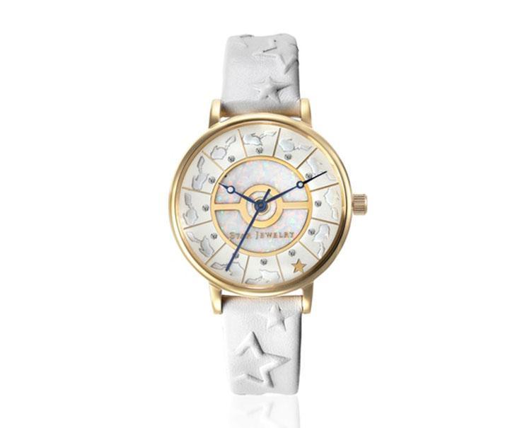 Pokemon collaborated with Star Jewelry, a famous Japanese jewelry company, to release a unique collection of jewelry inspired by the iconic Pikachu. Here's a white watch featuring motifs of Pikachu and Starmie.