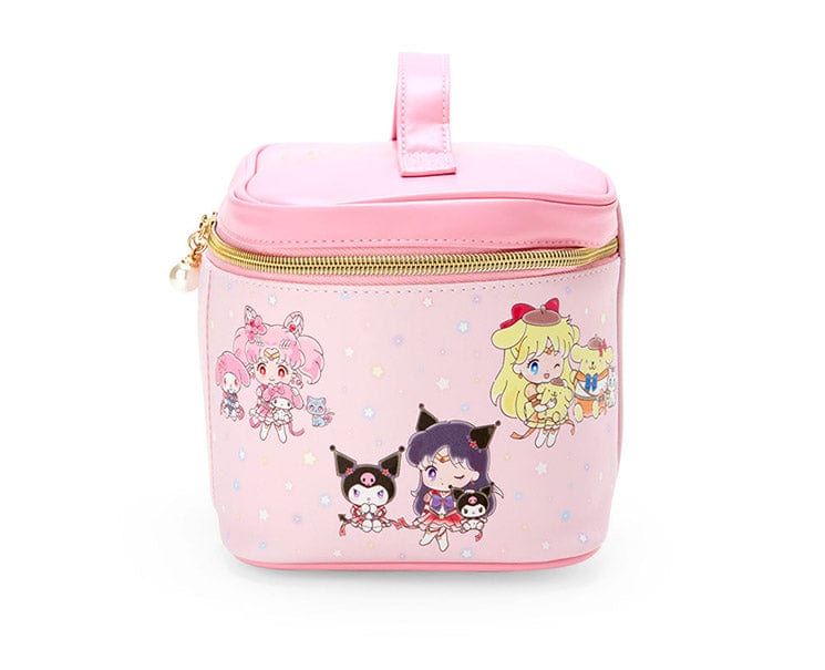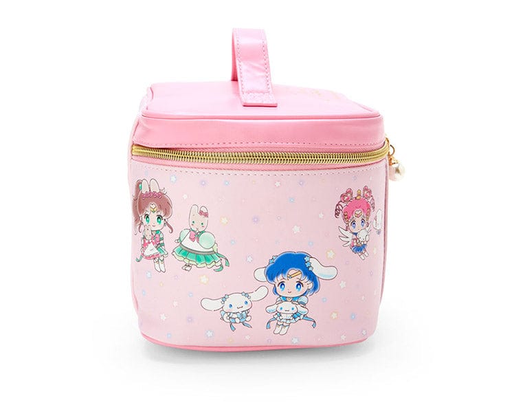 This vanity pouch features a delightful design showcasing 7 pairs of Sailor Soldiers and Sanrio characters. Its pearl zipper embellishment adds a touch of elegance!