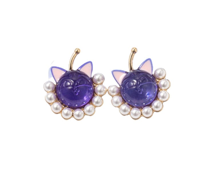 Inspired by Chibi Usa's transformation into Black Lady, these earrings feature a Luna-P Ball accessory with a Black Moon crescent moon symbol. Made with a transparent resin face and soft pink epoxy for the ears, and adorned with delicate pearls, these earrings are the perfect accessory to complement your Black Lady ensemble.