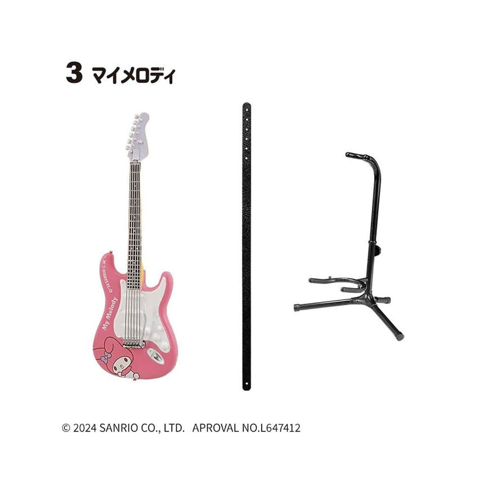 Rock out with this Sanrio Characters Rock Mono Blind Box! Each blind box includes a miniature guitar inspired by one of ten beloved Sanrio characters. These mystery boxes also feature mini guitar stands, straps, amps, and a piece of chewing gum for the full rock-n-roll effect. These blind boxes are shipped at random, making it fun to see which character you receive!