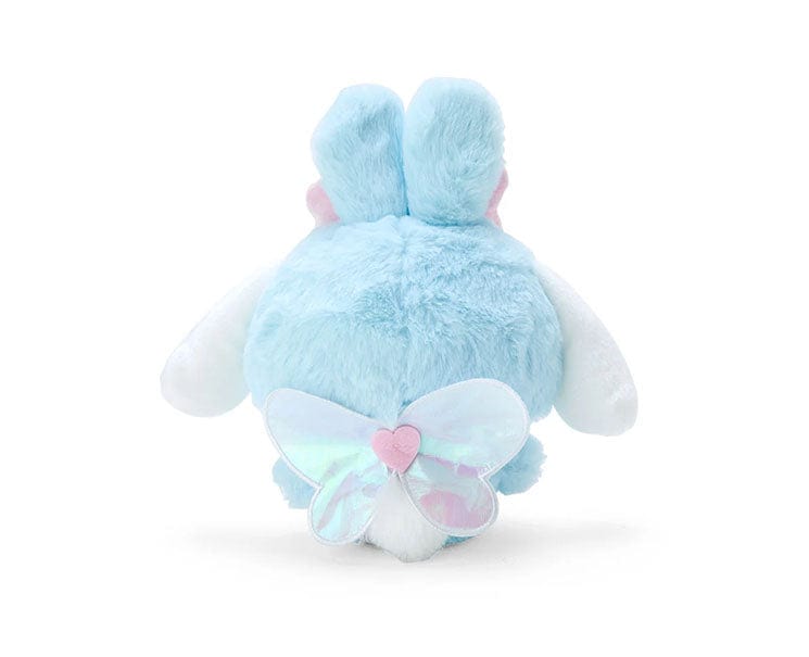 Sanrio Easter 2024 Plushie featuring Cinnamoroll. This plushie is part of the Easter Rabbit Design Series, capturing the essence of spring with its colorful and fluffy Easter bunny design. Find comfort in the adorable Cinnamoroll transformed into an Easter bunny, complete with a big ribbon and aurora wings as standout features.