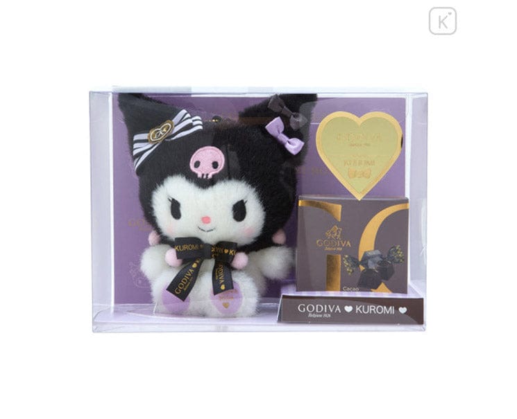 Experience the charm of the Sanrio x Godiva 2024 collaboration with this adorable Kuromi mascot that comes with a small chocolate box. Dressed in a cute hat and sitting sweetly, this mascot is perfect for collectors and as a delightful gift, featuring the special GODIVA 2024 emblem.