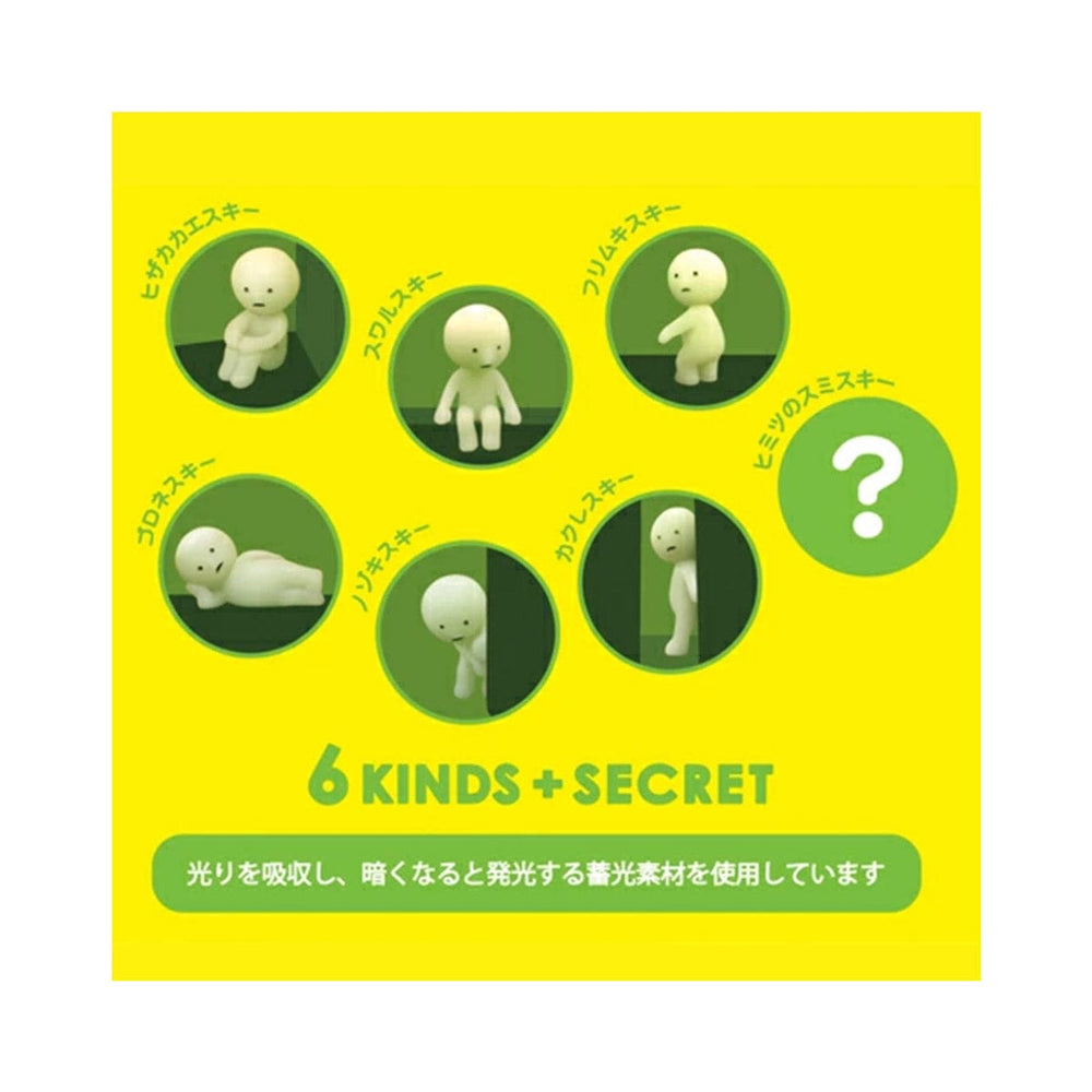 Enter the world of Smiski with this Blind Box Glow in the Dark Series! These cute, mysterious creatures enjoy hiding in the shadows and corners. This adorable series shows some of their favorite pastimes, from peeking to lounging. Each figure is made from a glow-in-the-dark material, so you can enjoy its cute appearance 24/7! This series features seven designs (including one secret design!). These figures are shipped randomly, making it exciting to unveil which character you've received. Which will you get?