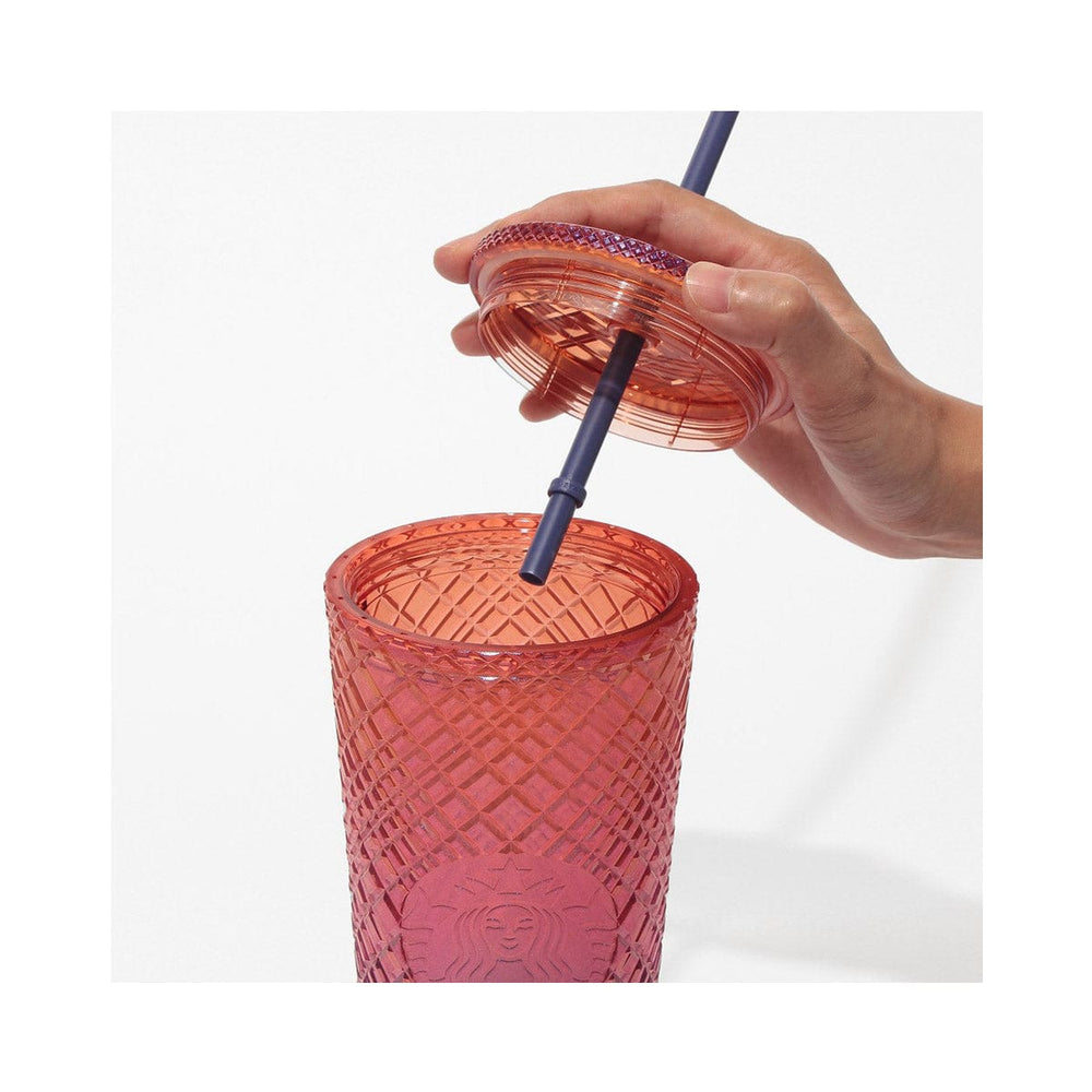 This stunning gradient Starbucks Cold Cup Tumbler shines just like its design! With a unique uneven texture, this tumbler sparkles when placed by a light source. It features a pretty purple and orange gradient design. It's part of a limited-edition 2024 Anniversary series. Use this tumbler for all your iced drink needs. Great as a gift for Starbucks lovers!