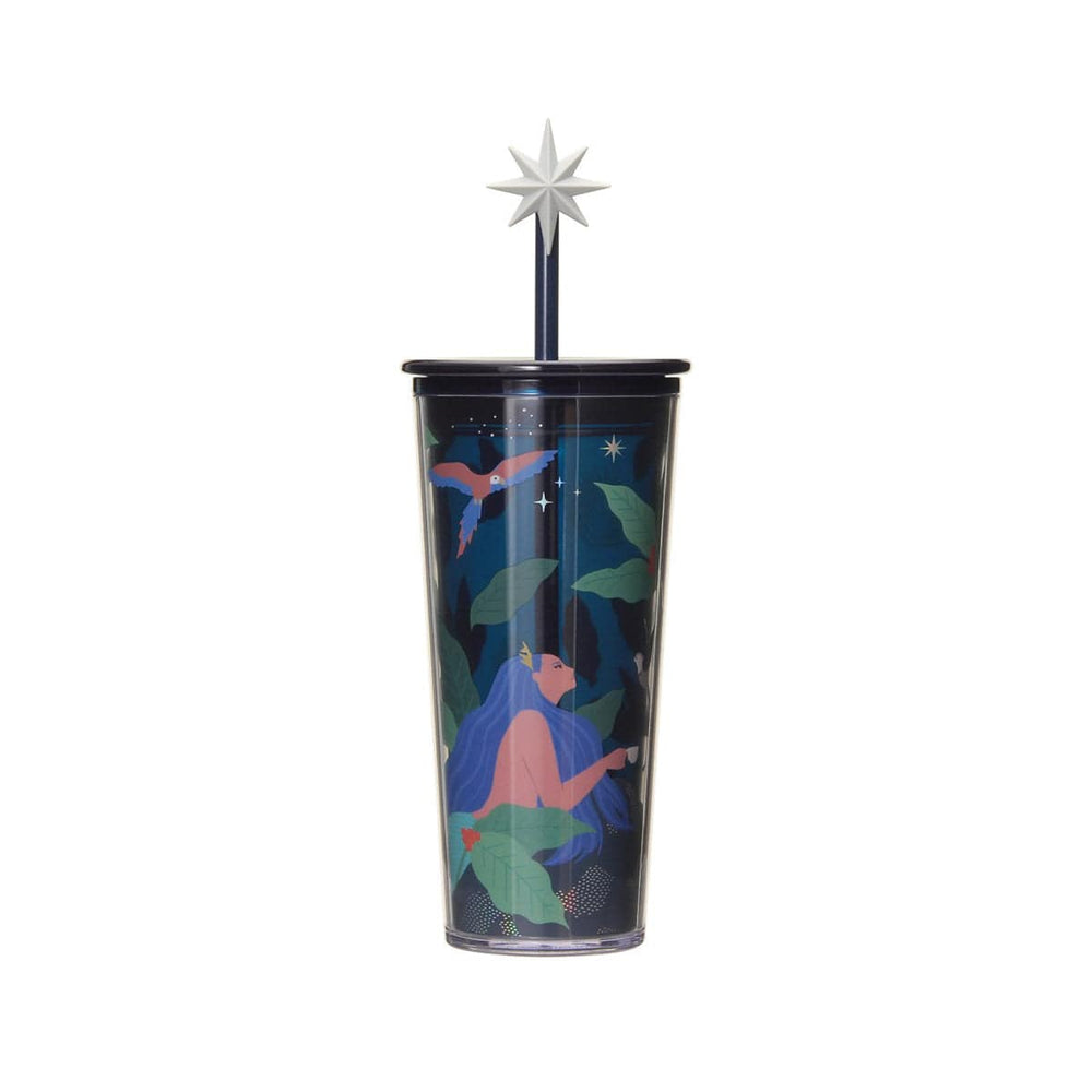 Calling all night owls and night sky lovers, this Starbucks Cold Cup Tumbler in navy is for you! This tumbler features an exciting design with a siren surrounded by stars, coffee cherries, and animals. It's perfect for iced coffees, iced Americanos, iced tea, water, and other cold drinks. This limited-edition tumbler is part of the 2024 Anniversary series; get it while you can!