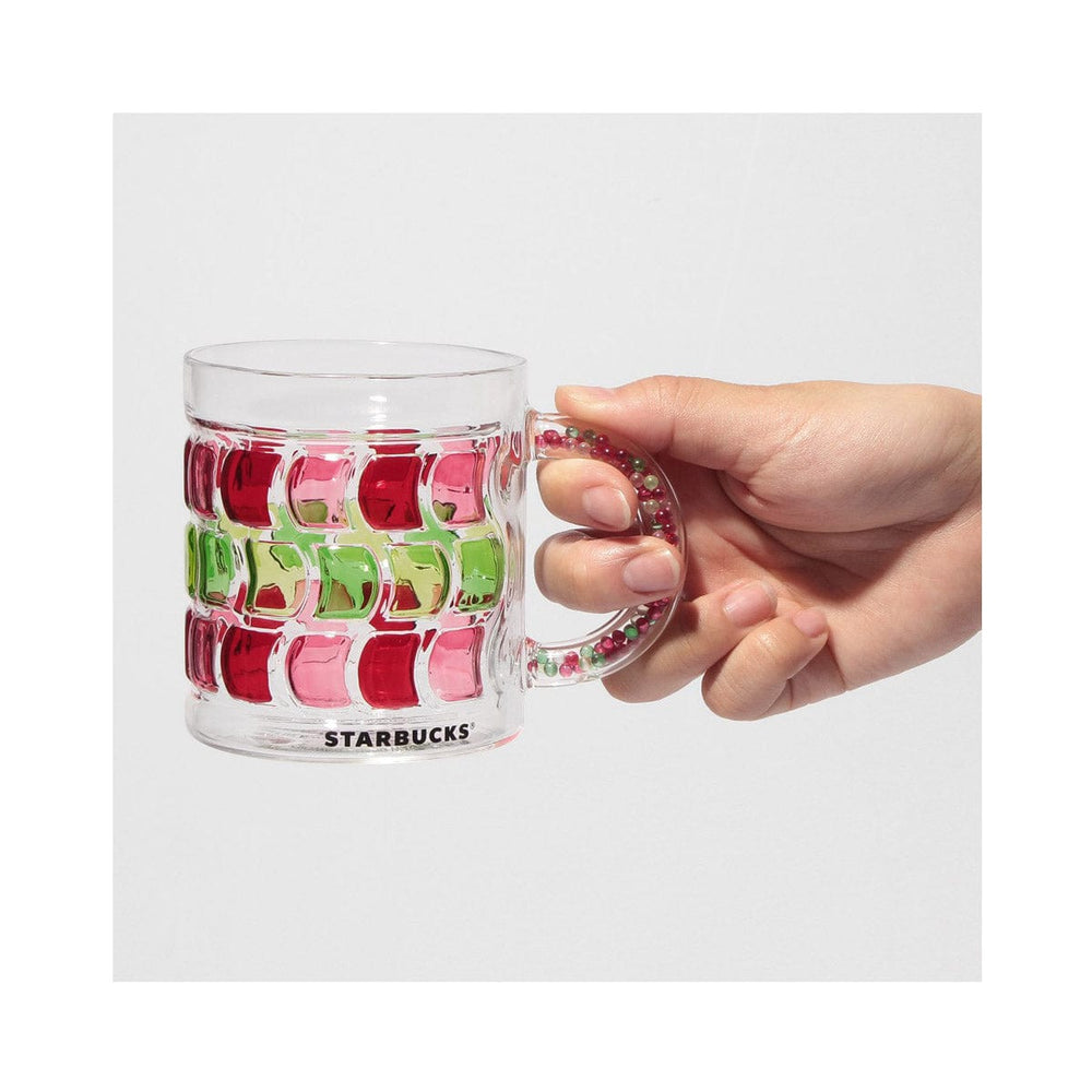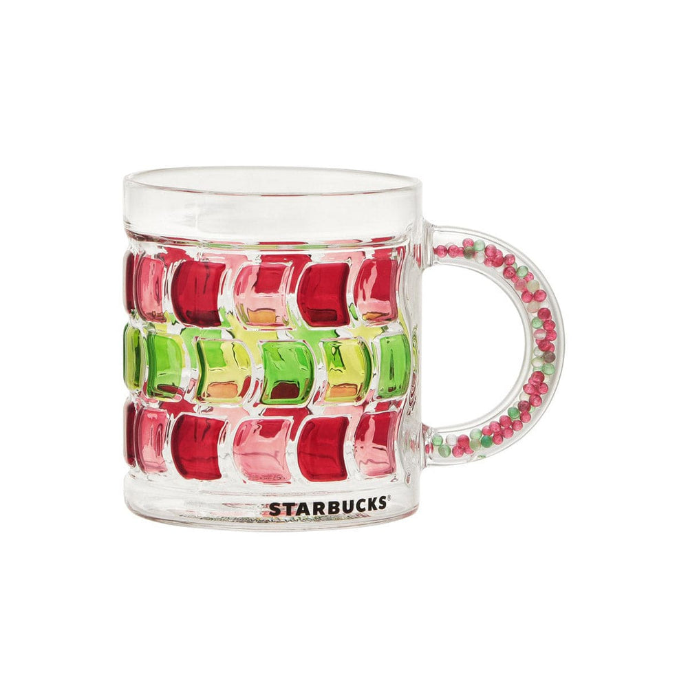As part of the "Merrier Together" Starbucks Japan Holiday 2024 line, this Heat Resistant Glass Mug is a must-have! It features a beautiful geometric design and fun holiday-colored beads in the handle. This heat-resistant mug is ideal for hot tea, coffee, and lattes. Add holiday spirit to your daily brew with this limited-edition mug!