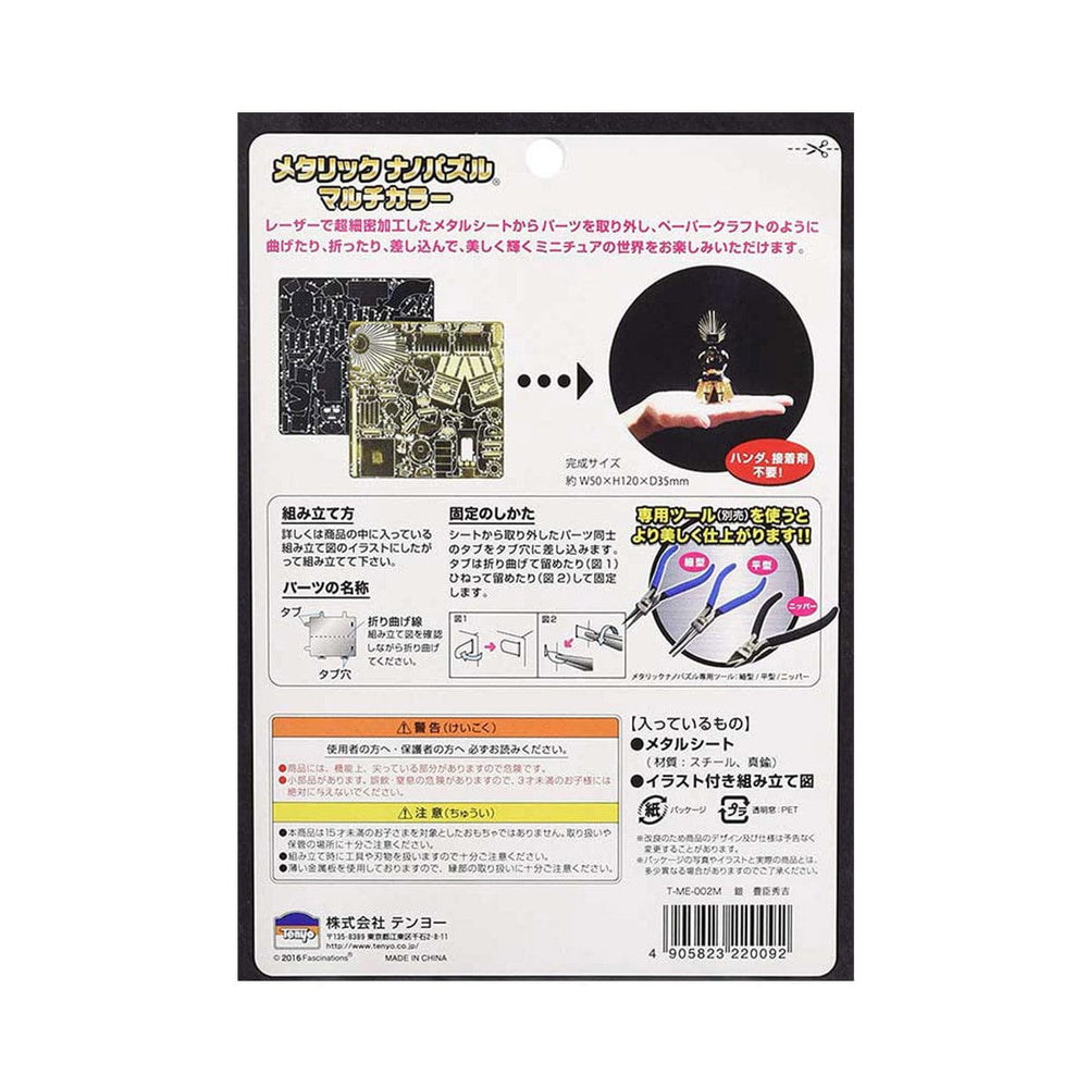 Step into Japan's Sengoku period with this exciting Tenyo Metallic Puzzle Armor. This armor is a replica of what Toyotomi Hideyoshi (the second "Great Unifier") once wore. This kit includes laser-cut metal sheets that you will bend, fold, and use to assemble the model. Once assembled, this replica is perfect for displaying on desks, shelves, and nightstands.